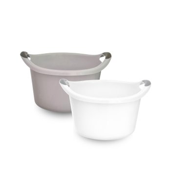 A Bacia possuem alças reforçadas e pegadores anatômicos que facilitam o transporte com água ou roupas.