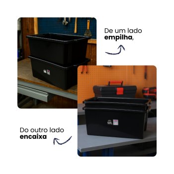 Design empilhável: permite otimizar espaço, mantendo várias caixas organizadas com estabilidade