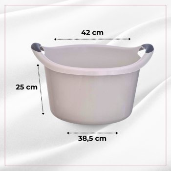A Bacia possuem alças reforçadas e pegadores anatômicos que facilitam o transporte com água ou roupas.